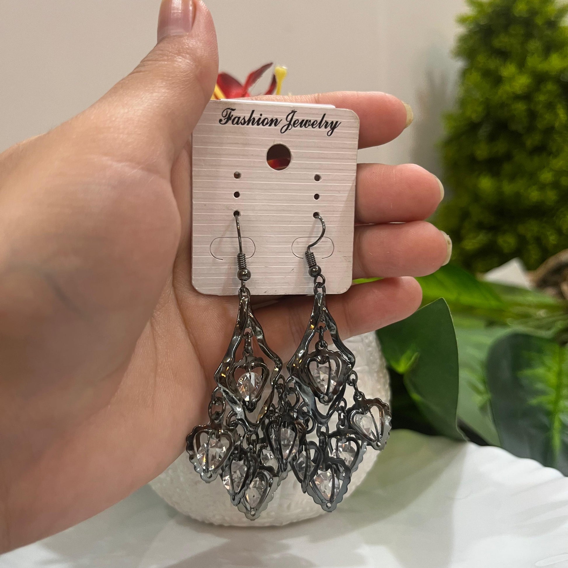 Luxury Chandelier Drop Earrings with Gunmetal Tone & Crystal Hearts